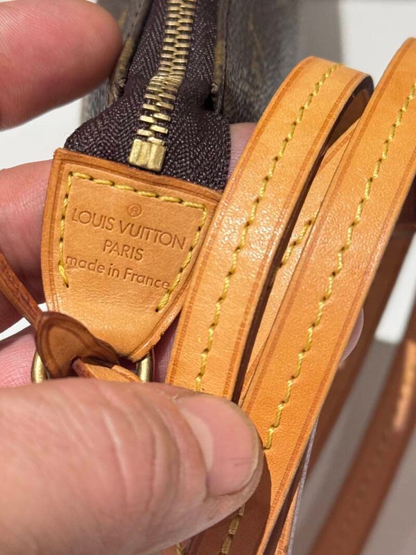 The Monogram canvas is in beautiful condition, leather parts show a warm natural patina, and the zipper runs smoothly. Both the bag and the crossbody strap are in excellent, well-kept condition.